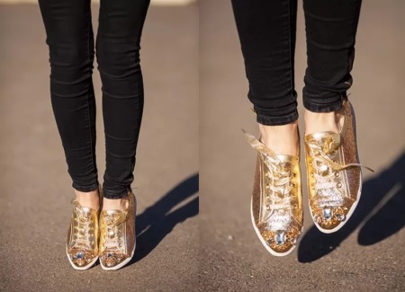 There are colors with which golden sneakers will look most spectacular.