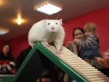 - a white fluffy pet is worth walking, as he is quite active and agile; when walking around the apartment, the rat should be watched, eliminated access to wires, and also temporarily remove other pets;