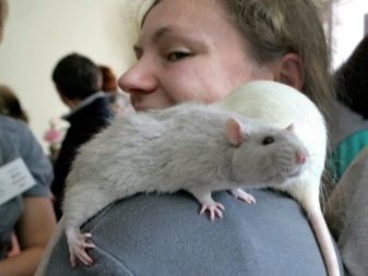 It is recommended to start rat pups, as they are easier to tame. This rodent loves to sit on a person’s shoulder and kiss. And also they are able to sleep on the lap of the owner in a folded form like cats. This decorative pet can be taught various tricks. He is able to respond to his name, bring toys on demand and leave the house if the owner calls.