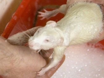 The owner of a white rodent must remember that every living creature has its own smell and frequent bathing with shampoos can clog it. As a result, other animals may not recognize a relative and behave aggressively towards him.