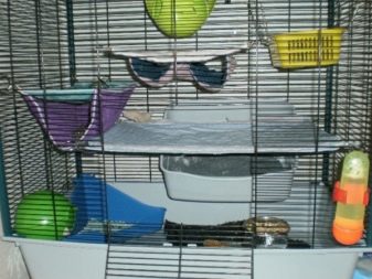 When choosing a cage, special attention should be paid to the distance between the rods, which should not exceed 20 mm, as well as a flat floor, a high pallet, wide doors and shelves. Mandatory elements of the home are a house and a hammock.