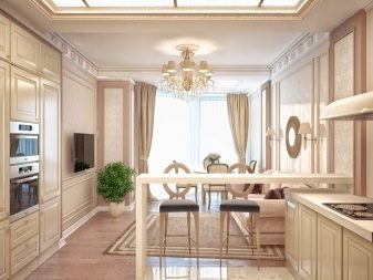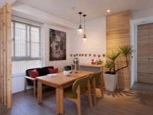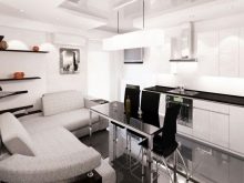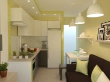 A very common option in studio type apartments. You can consider this type if your family includes many members, in connection with this, more space is needed for storing and preparing food.