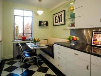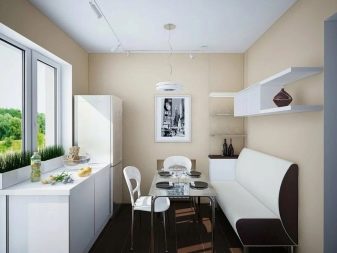 Another option, which is one of the best, can be called a corner sofa. This is how you can save space in the kitchen, while maintaining comfort. Some combine a loggia with a kitchen area and place a sofa there, thereby further increasing the area of the room.