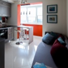 It is not necessary to choose a strictly white interior. Although it remains in vogue, it gradually tires people more and more. The combination of different colors is realized through the use of accent walls. You can also set accents using photo wallpaper. Using wallpaper with a three-dimensional effect or a particularly large image is impractical - because of them, the space will seem too narrow in appearance.