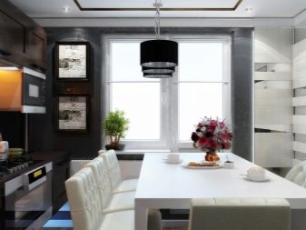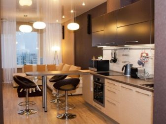 - The room must be properly zoned. The kitchen and other furniture need an orderly arrangement, the arrangement of the recreation area and dining area should also be streamlined. At the same time, all elements of the kitchen must visually maintain integrity.