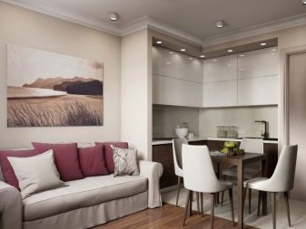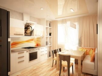 Often the owners decide to combine the space, because the size of the kitchen allows you to organize in it a small living room. If the apartment is one-room, the solution is quite reasonable.