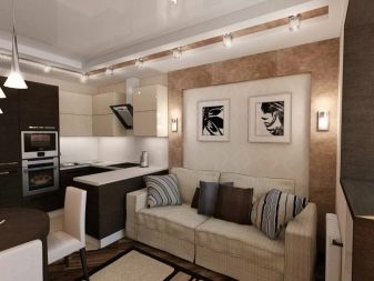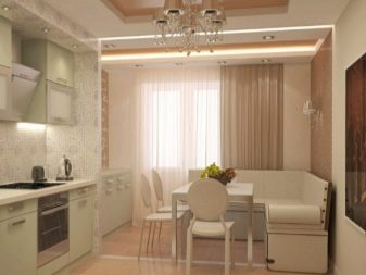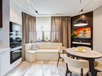 - you can do this with a sofa - it will become part of the dining area or form a separate relaxation area (if you plan to make the sofa an extra bed).