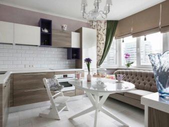 If the kitchen has a sofa, the room already looks like a union with the living room. Or part of the space takes over the functions of a mini-living room. In most cases, the owners strive to distinguish 2 zones, to indicate their functional difference. From this design the overall image of the kitchen only benefits.