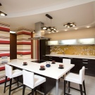 - If households still have meals in the kitchen, do they do it all at the same time? The fact is that many families have a tradition - you need to get together all for a meal at least on a weekend, if the schedule allows. Others go in a fundamentally opposite way - there everyone eats on his own. In the first case, you need a full-fledged dining area, which occupies a huge space, in the second situation there is no need, because you can often limit yourself to even a modest bar counter.