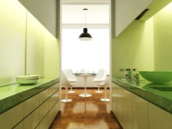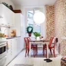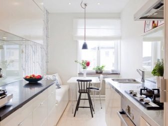 Someone in the kitchen is so comfortable that he would work here on a laptop - for this you need to highlight a separate small area. Young mothers can not leave babies unattended, which means that it is necessary to provide for a play area even in a room so inappropriately intended for this. Finally, an aquarium with fish or green spaces will be an excellent decoration for the room, but they will also occupy a place that should be allocated in advance.
