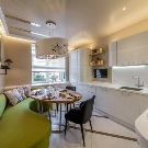 - Will there be a dining area in the kitchen? For someone, the kitchen and the dining room in the conditions of their own apartment are one and the same thing, and the hostess forbids the household to eat anywhere else except this place. Others, on the contrary, do not see a way to place a dining table in the kitchen if the family is large, and generally prefer to have a meal somewhere in the living room.