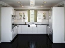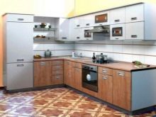 - L-shaped or corner kitchen recently considered both the most convenient and the most sought after. Its convenience is based on the idea that the work area should be in the shape of a triangle - then everything you need will be at hand and you won’t have to stretch, walk back and forth, or spin in place. Another plus of this layout is that you can arrange furniture and appliances in the shape of the letter “G” in a room of any shape. As a short stick, a refrigerator is often used, which does not fit into the main row.