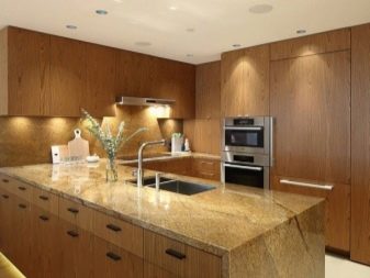 A much more unusual performance should be considered organization of a sink or stove on the island, but in the first case, you should provide a way to supply water and sewage, and in the second - consider installing a hood in the middle of the room.