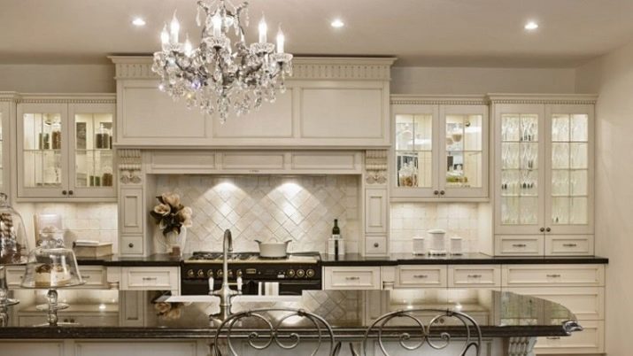 An expensive chandelier is an indispensable element of a classic kitchen, in addition, your interior must look expensive. Particular difficulty will be to fit modern technology into the old-fashioned design, but some manufacturers still meet the needs of lovers of the elite and produce retro models in a limited edition.