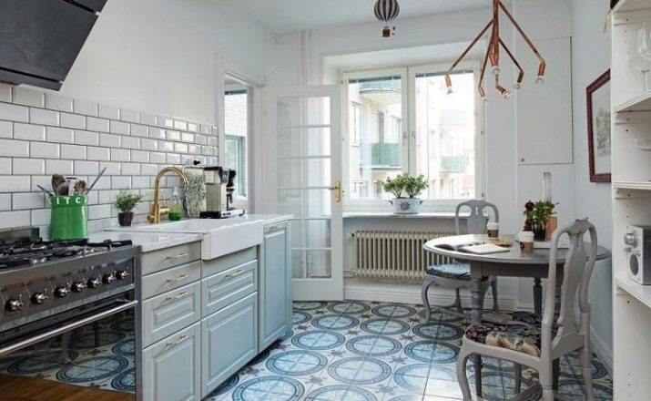 For this reason, the kitchen floor must be moisture resistant, because the original ideas with parquet or laminate should be immediately discarded.