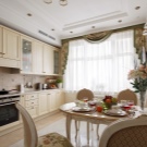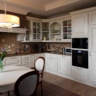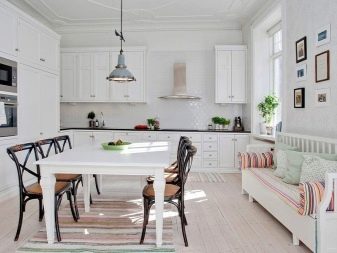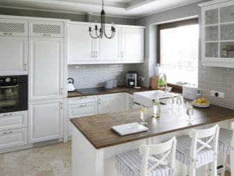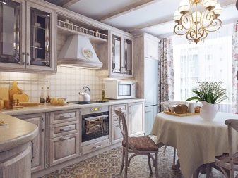 Classics are more often suitable for conservative owners of middle or older age. The primary colors used are beige, white and brown.Materials must be natural and always of high quality. If you decide to use color upholstery, the fabric should be soft and easy to wash. The design of a country-style kitchen makes the room cozy and original looking. Such a design requires the use of wooden furniture, a calm and moderately bright color palette, ethnic motifs in dishes and textiles, as well as artificially aged surfaces.