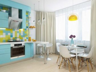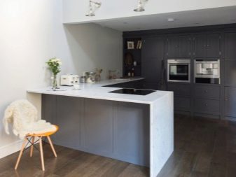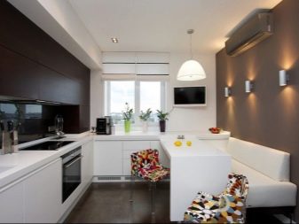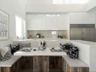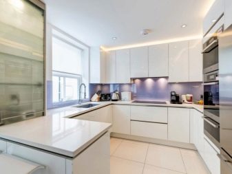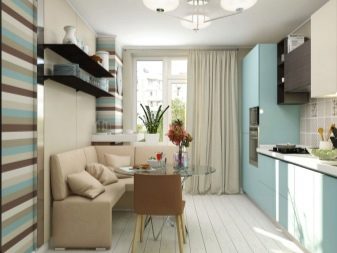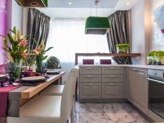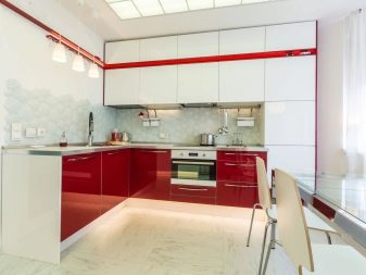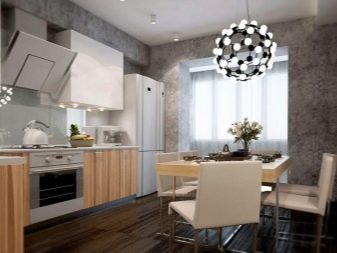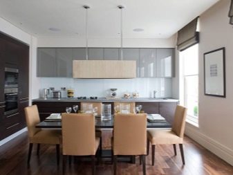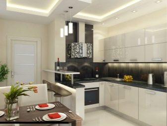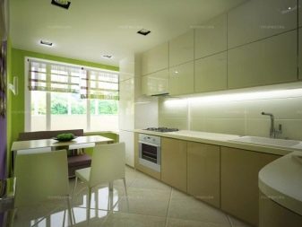 Usually, The 13-meter kitchen has a rectangular or square shape, which allows you to conveniently place almost any headset in it - angular, linear, U-shaped or equipped with an island. L-shaped set allows you to create a convenient working triangle connecting the refrigerator, sink and stove. The linear layout can be either single-row or double-row. To make a single-row headset more interesting, it can be equipped with a bar counter. The two-row set is recommended for installation only in a room the width of which is at least 2.5 meters, and it also looks good in a narrow space with a balcony.
