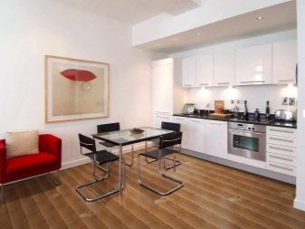 The floor in the loft-style kitchen should be wooden - either laminate or parquet.