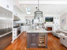 In the large kitchen, in addition to the working area, you can equip a quite comfortable dining room. There will also be enough space for arranging a recreation area, it all depends on your desire and capabilities. You can divide the space in different ways: