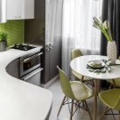 - the kitchen set should not be bulky either; glass doors, glossy facades of light colors, minimal fittings look great in a small kitchen;