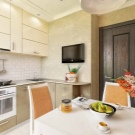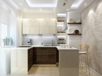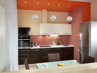 When preparing to change the interior of a small kitchen, you need to focus on either a corner or a linear diagram. When choosing the second option, the headsets are placed along an elongated wall. It is recommended that you use lockers of the greatest possible height. On the opposite side of the room there is a place for dining tables or bar counters. Walls are used to place TVs and paintings.
