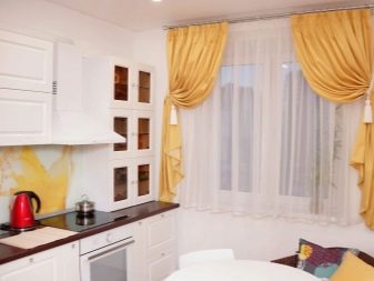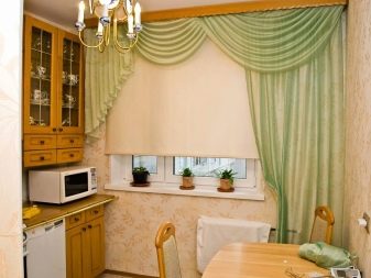 Great attention should be paid to the choice of curtains. Categorically unacceptable cloths from dense heavy fabrics. The use of curtains with large ornaments is also not allowed. Do not use very long curtains (to the floor). The best option is a light short curtain.