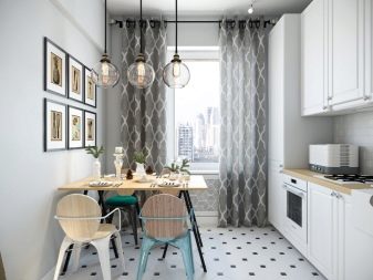 The final choice depends on financial capabilities and aesthetic preferences. To increase the working space in the kitchen of 7 square meters, it is advisable to use a window sill as a continuation of the countertop. In some cases, it is worth using bar counters as well - they can mitigate the restrictions associated with a lack of space. In any case, you need to use cumbersome chairs, which are easy to move as needed.