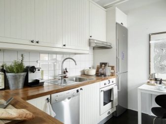 It differs from minimalism in its bright accents that visually dilute the composition. Sometimes small-sized kitchens are designed in the spirit of hi-tech. For this purpose, they use modern finishing materials and take into account the latest trends in design.