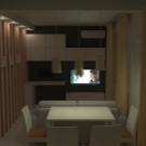 The TV is positioned high enough to be conveniently watched directly during operation. Chasing overly bright lighting is not worth it. It is better to use a few relatively dim local fixtures than a very powerful chandelier. More important rules when arranging an area of 8 square meters. m are: