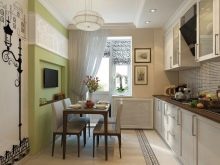 Important: it is worth using a sliding door on the aisle, which additionally saves space. Of course, all the main working and dining areas should be well lit, regardless of the time of year.