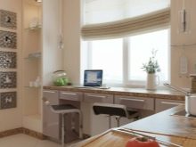 If it is impossible to move the dining area to the balcony, then you can try connecting the kitchen to the living room. Then visually try to continue the working area with the help of the bar. But a breakfast table (that is how this piece of furniture is officially called) can also be a substitute for a windowsill. Thanks to this technique, useful space is saved, and usually a meaningless place at the window acquires a clear function.