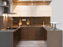 Along with the corner and direct arrangement of furniture, appliances in the kitchen of 8 square meters. m sometimes it is advisable to consider the option in the form of the letter P. This configuration implies occupation of three walls at once. However, it should be borne in mind that you will have to completely abandon the usual table. There is only one way left - replacing it with a bar counter. If this piece of furniture is not pleasant, it is better to consider other schemes.