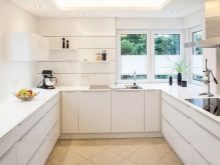 With a U-shaped arrangement, it is necessary to check that the passages are not already 0.8 m. The optimal width of the aisles will be 1.2 m. For greater visual spaciousness, when combining different rooms, arches are used. Of course, all layouts and redevelopments can be used only when they meet the safety requirements.