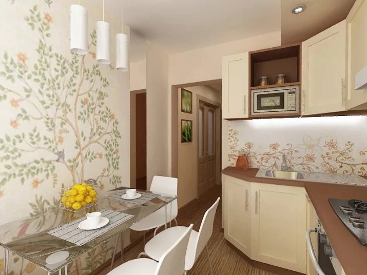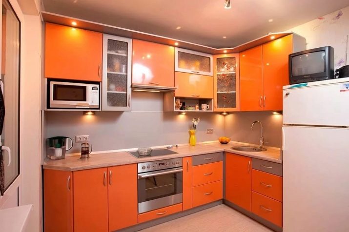 But general rules cannot replace specific practical nuances. In the planning projects for kitchens of 8 square meters. m corner solutions are often used to save space. But with such an area, a semicircular pattern is sometimes appropriate. Preference should be given to built-in headsets and products with extendable parts.