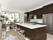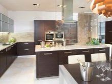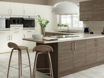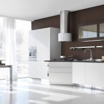 It is very important to correctly select the materials and decide on the decoration of the white-brown kitchen. All elements should look like a single composition.