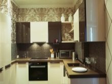 A harmonious way of decorating the kitchen is a light overall background and an additional brown. This is an extremely comfortable combination, optimal for rooms of any size. White wallpaper, decorative plaster, paint are perfect for wall decoration. Remember that wallpapers must be washable.