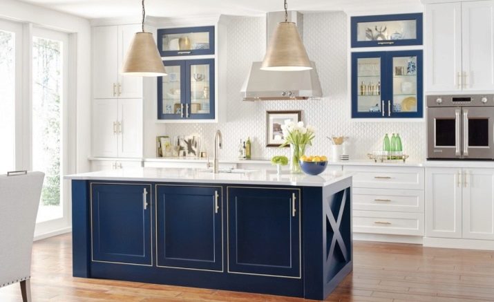 The color scheme of the kitchen today is given a lot of attention. Despite the fact that many people prefer to choose kitchens in warm colors, the design using the contrast of white and blue is gaining popularity. The material of this article will tell about what are the features of such kitchens, and how to correctly place accents in them.