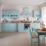 Turquoise is one of the most sophisticated and popular shades of blue. It is very pleasing to the eye, so it is often used to decorate many rooms, and the kitchen is no exception. Usually this shade is chosen by people living in the south of our country, who are more attracted to cold shades in the interior. In addition, such a room always looks spacious and comfortable.