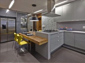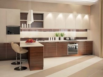 Highlighting each functional zone with the right shade, selecting furniture in a certain color, maintaining the color scheme of the room due to the floor, ceiling and walls makes it possible to get a beautiful and functional kitchen.