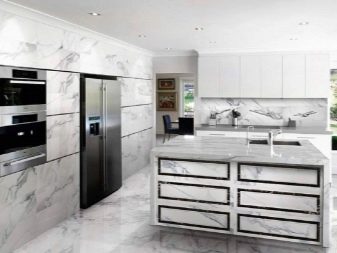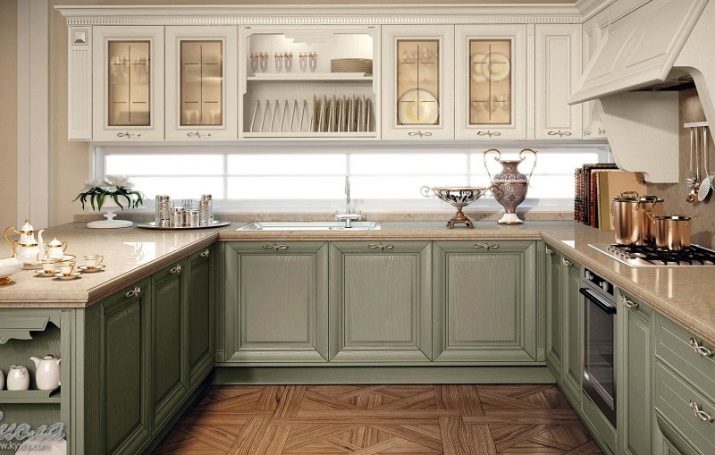 A variety of colors, the ability to experiment with shades is most relevant for kitchens with large dimensions. The play of colors, textures and materials create a single ensemble that maximizes the potential of the room.