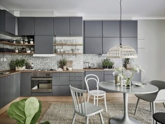 - Grey. Despite all the seeming simplicity, in this color the room is discreet, but very stylish, and with the right combination with other shades, the effect exceeds all expectations. The advantage of gray is that it can be used both in modern styles and in many others, creating a unique atmosphere of the kitchen.