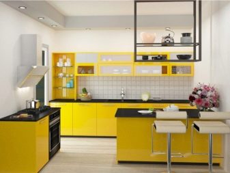 - Yellow. Bright and unique shade that causes only positive feelings and emotions. It will be very pleasant to cook a variety of dishes and eat them in such a room.