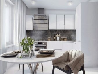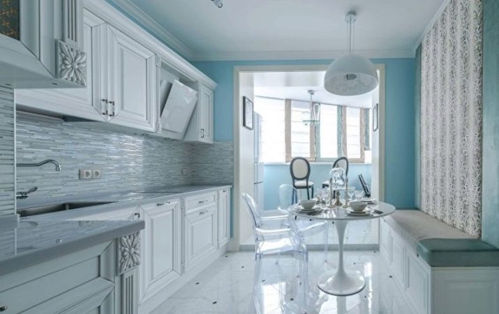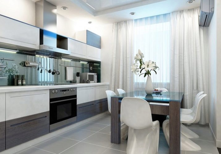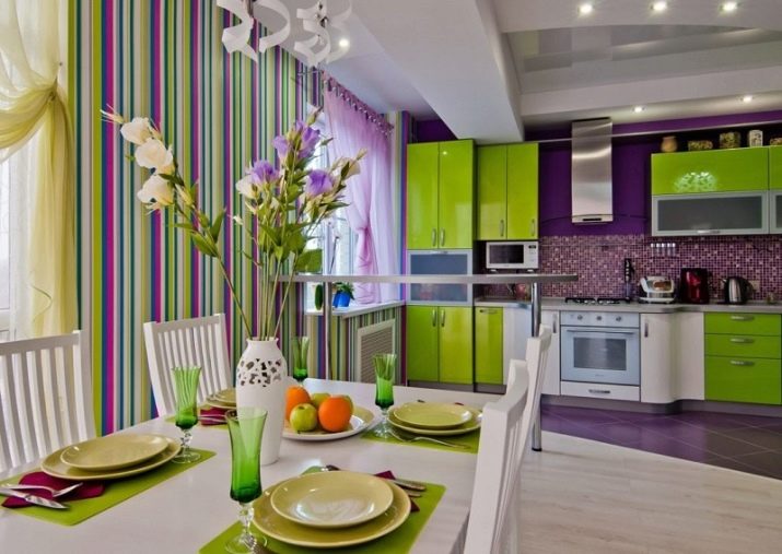 The kitchen can be decorated in brighter colors, but you need to use them wisely, because a contrasting spot on a light background will visually reduce the room.