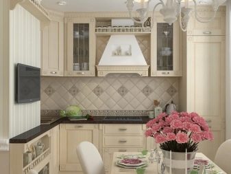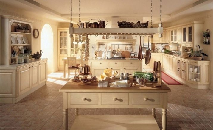 A light color scheme allows you to make the kitchen more elegant, as well as visually expand its borders. For a country style, traditional is the use of natural materials or their imitations. The most successful color scheme is: