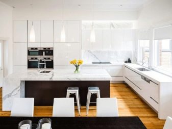 - White. The most popular color, which has not lost its relevance for many years. Used to design kitchens in different styles. The airiness and lightness of the room will please anyone, tuning in to bright and good thoughts.