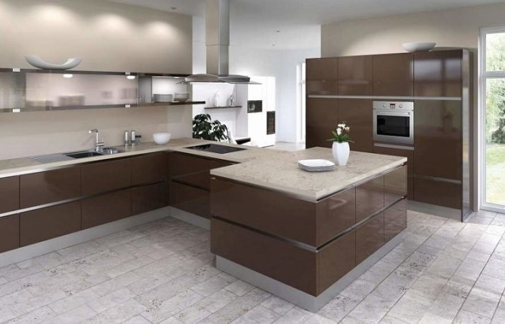 - Brown - A very pleasant color for the kitchen, as it helps to make it more cozy, home and comfortable.This color does not bother, does not hurt the eyes, so for many years it can satisfy households.