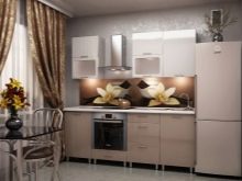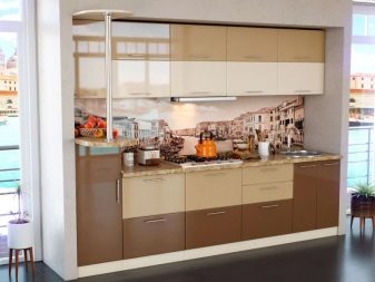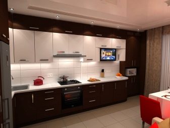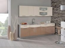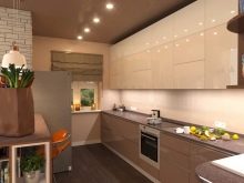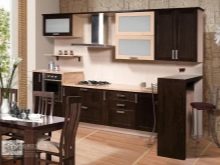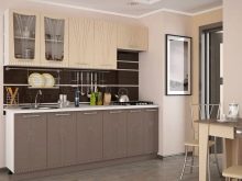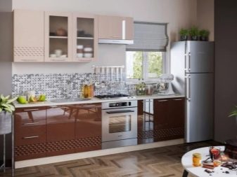Double row kitchens In this color, they are good using the whole gamut: light facades and hanging cabinets, brown side panels and countertops, the headset creates a warm, relaxing atmosphere.