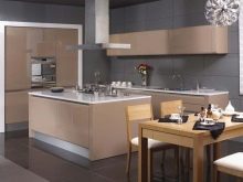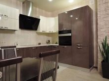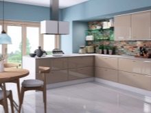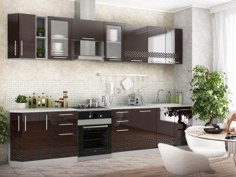 Glossy coffee facades in the same tone with the walls are welcome, you can design only the countertops in the same way as the background or only the facades of the upper or lower cabinets.