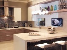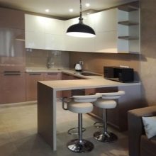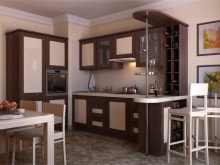 With a bar, the kitchen can be decorated in one palette and in contrast, it is interesting to highlight the counter top lighter or, conversely, darker than the main background. You can make part of the headset with a chocolate counter, and the other - coffee with milk, so the room will seem voluminous and harmonious.