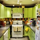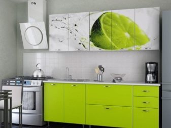 The lime color is quite practical - spots, scuffs and scratches on such furniture are not striking. And the shade can be safely called universal. Using lime for background wall decoration, you can accentuate and emphasize almost any kitchen furniture.